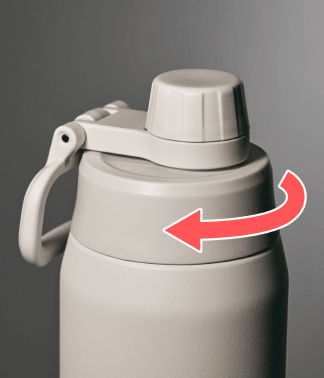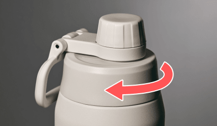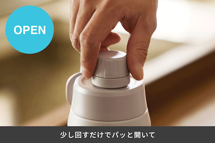 少し回すとロックが解除され、手を離すと自動で開きます。閉めるときは押すだけ。少ない動作で素早く水分補給できる、新感覚のキャップです。