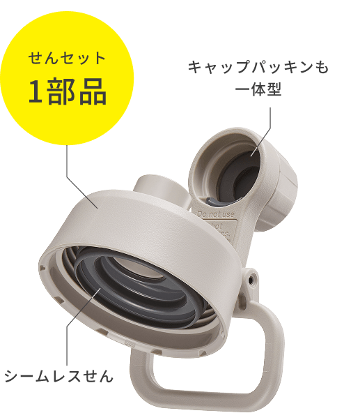「せん」と「パッキン」がひとつになった「シームレスせん」を搭載。ふだん使いの”ちょっと大きめ”マグ