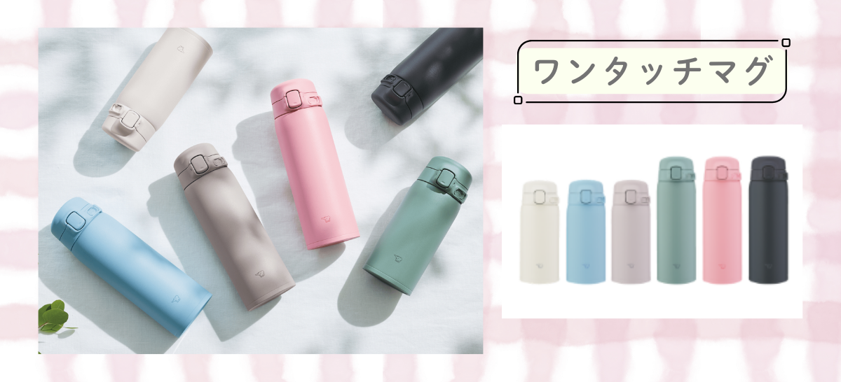 ワンタッチマグなら、お散歩中も、片手でスマートに水分補給。