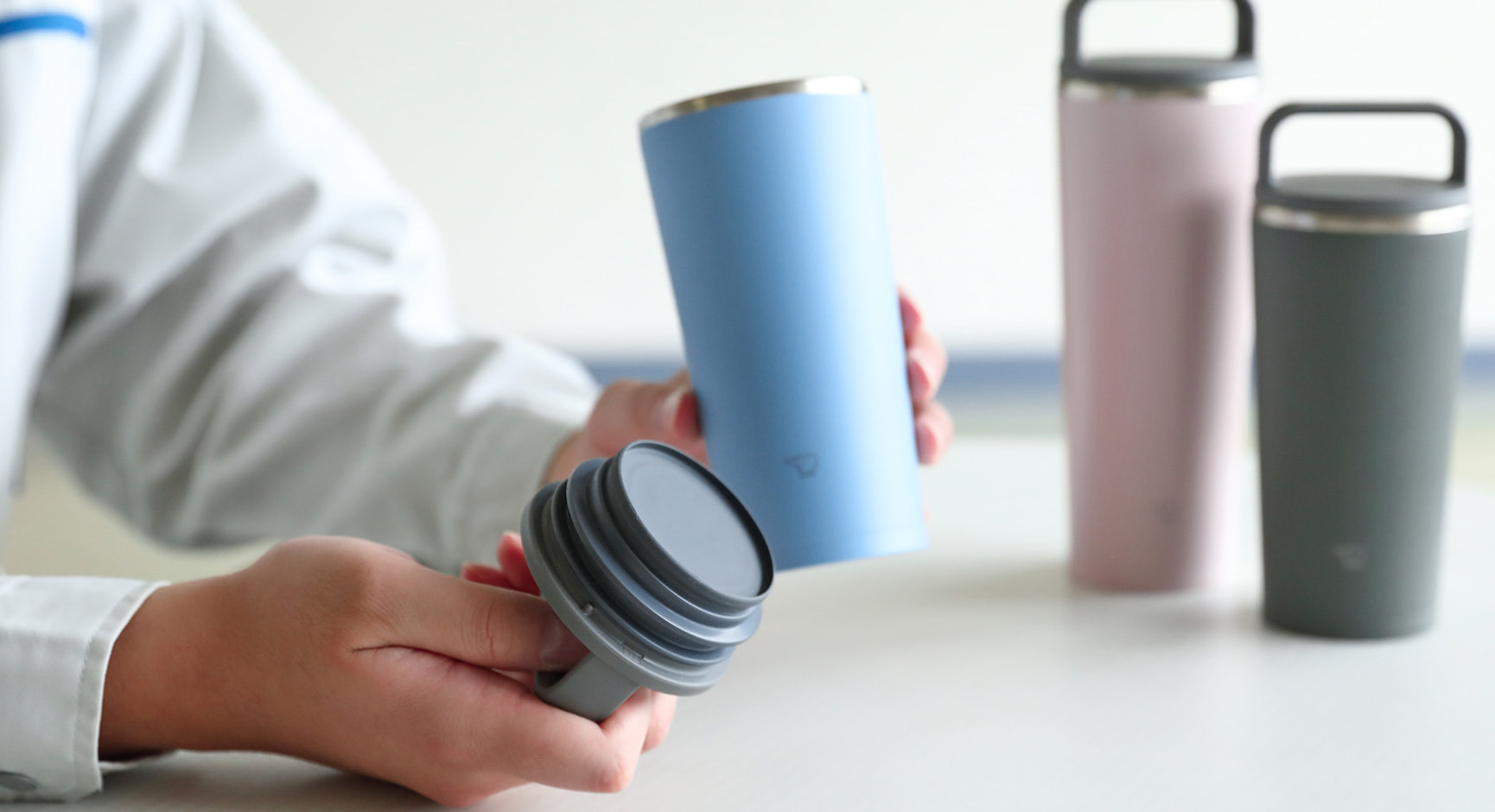 「これは売れる」と、開発がすすむにつれて、みんなが確信。実際に、予想を上回る反響があったのは嬉しかったです。「シームレスせん」を搭載した第一号の製品は、スクリュータイプのステンレスマグでしたが、その後、ワンタッチオープンタイプも登場。さらにハンドルタイプやフリップオープンタイプのステンレス キャリータンブラーなど、「シームレスせん」搭載の製品も加わりました。
