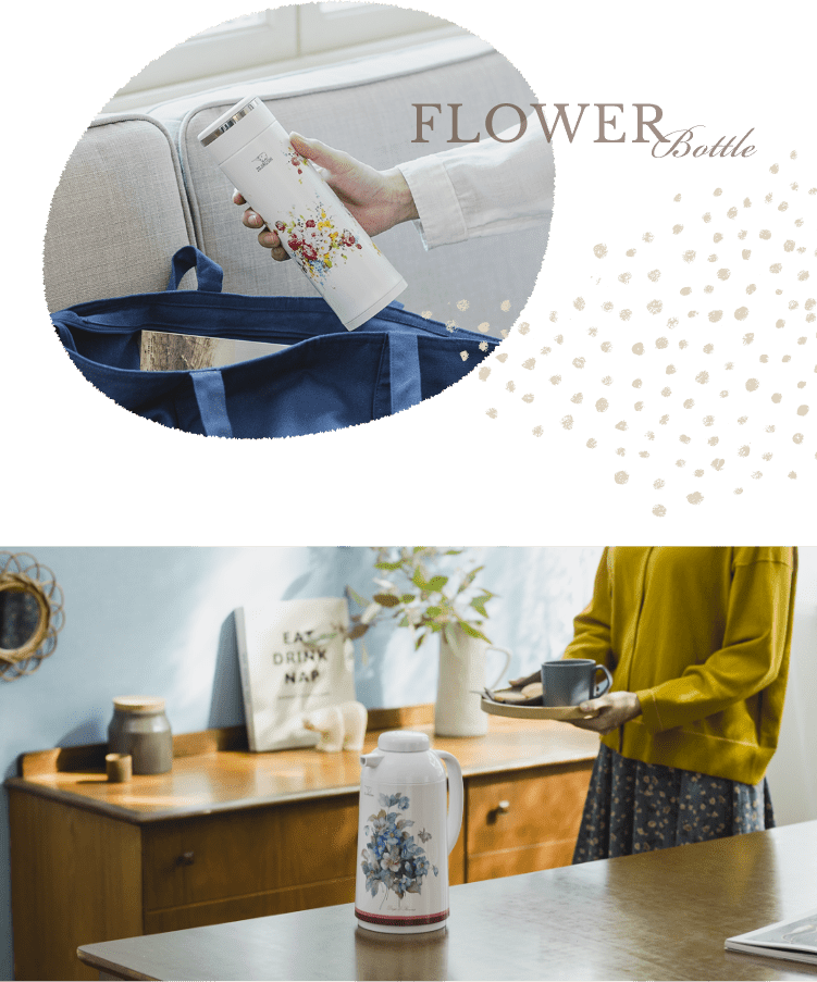 スリムな花柄ボトルはお出かけの相棒にもぴったり。