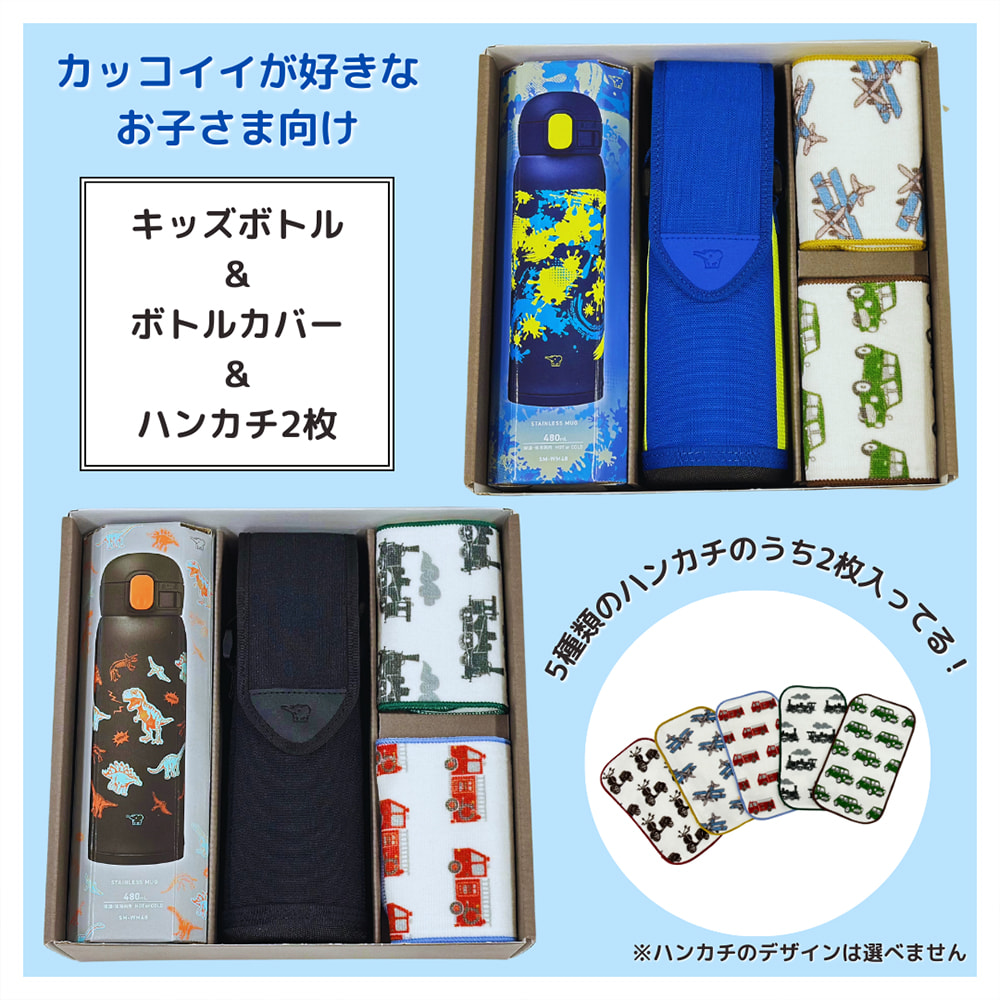 「キッズボトル」+「ボトルカバー」+「ハンカチ」が