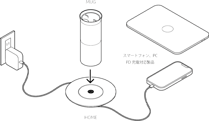 ① MUGもしくはQi対応製品